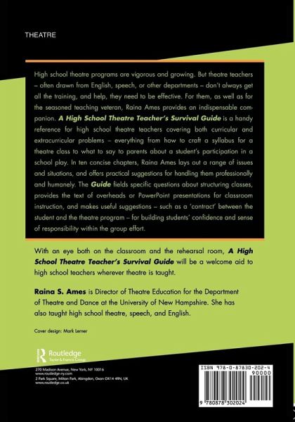 A reference for high school theatre teachers covering both curricular and extracurricular problems - everything from how to craft a syllabus for a theatre class to what to say to parents about a student's participation in a school play.