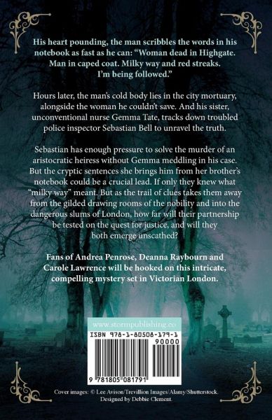 His heart pounding, the man scribbles the words in his notebook as fast as he can: "Woman dead in Highgate. Man in caped coat. Milky way and red streaks. I'm being followed." Hours later, the man's cold body lies in the city mortuary, alongside the woman he couldn't save. And his sister, unconventional nurse Gemma Tate, tracks down troubled police inspector Sebastian Bell to unravel the truth. Sebastian has enough pressure to solve the murder of an aristocratic heiress without Gemma meddling in his case. But the cryptic sentences she brings him from her brother's notebook could be a crucial lead. If only they knew what "milky way" meant. But as the trail of clues takes them away from the gilded drawing rooms of the nobility and into the dangerous slums of London, how far will their partnership be tested on the quest for justice, and will they both emerge unscathed? Fans of Andrea Penrose, Deanna Raybourn and Miss Scarlet and the Duke will be hooked on this intricate, compelling mystery set in Victorian London.