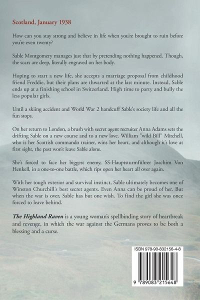 "Wow! This turned out to be one of the best WW2 books that I've read. Both male and female readers will definitely enjoy reading The Highland Raven." -Amazon Reviewer Scotland, January 1940 From troubled society girl to diehard SOE agent. Staying strong and picking up your life, when you're brought to ruin before even turning twenty, seems an impossible pursuit. Sable Montgomery sees only one way out. Pretend nothing happened, though the scars are deep, literally engraved on her body. In a desperate dash for a new start, she accepts a marriage proposal from childhood friend Freddie, but their plans are thwarted. Instead, Sable ends up at a finishing school in Switzerland. High time to party and bully the less popular girls. Until a skiing accident and World War 2 handcuff Sable's society life and all the fun stops. On her return to London, a meeting with secret agent recruiter Anna Adams sets the drifting Sable on a new course and to a new love. William "wild Bill" Mitchell - the Scotsman who trains the SOE agents - wins her heart. And though it's love at first sight, the past won't leave Sable alone. When she's forced to face her biggest enemy, Gestapo leader Joachim Von Henkell, her heart is ripped open all over again. But Sable never surrenders. With her tough exterior and survival instinct, she ultimately becomes one of Churchill's best secret agents. Even Anna can be proud of her. But when the war is over, Sable has but one wish. To find the girl she was forced to leave behind. Inspired by the true stories of female SOE agents in France, The Highland Raven is a young woman's spellbinding story of heartbreak and revenge, in which her fight against the Nazis proves to be both a blessing and a curse. An engaging and evocative novel reminiscent of The Rose Code and The War Pianist.