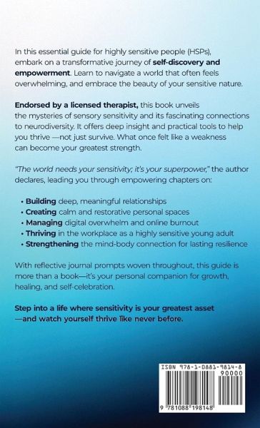 Turn your high sensitivity into a superpower. Navigate, survive, and thrive in life with this essential guide...regardless of your past experiences! Do you often feel out of sync with your surroundings, overwhelmed by sensory overload, and drained by social interactions? Does your sensitive nature often feel like a burden, causing you to succumb to stress and anxiety? You may feel you're the only one feeling these emotions But, you're certainly not alone. In fact, you are part of the 15-20% of the population born with a nervous system that's acutely attuned to the subtleties in the world. Welcome to the reality of the highly sensitive person (HSP) - a reality often misunderstood, but one which, with the right guide, can become an empowering journey to self-understanding and resilience. Introducing this book which aims to be your beacon in the fog. This book isn't about fixing you because you're not broken. It's about understanding your unique trait, empowering you to harness your sensitivity, and transforming it into a strength. The ultimate purpose? To arm you with practical strategies and deep insights to turn what is often viewed as a weakness into a strength. In this transformative guide, you'll discover:Remarkable insights into sensory sensitivity and its intriguing overlap with phenomena like neurodivergence - a revelation akin to the discovery of a sixth sense Proven strategies to form fulfilling friendships and enchanting romantic relationships, even if you've been misunderstood or overlooked in the past Ingenious tips to carve out a serene and nurturing personal space, turning even a bustling college dorm into a restful haven - as restorative as a spa retreat! The ultimate guide to social media sanity, mastering the art of digital interaction, and saying goodbye to online overwhelm How to thrive professionally, even in an extroverted workplace, leveraging your sensitivity as a superpower to outperform others The secrets to understanding the mind-body connection, tapping into a wellness goldmine that promises mental resilience and emotional well-being Empowering journal prompts sprinkled throughout the chapters, designed to provoke introspection and self-growth ...and much more! Even if you believe that your heightened sensitivity is an insurmountable hurdle, this guide is here to show you that it can be your greatest asset. Yes, even if past experiences have left you feeling broken and misunderstood. Remember, understanding is the first step toward healing - so take that first step and discover how powerful you can be. If you're ready to harness the power of your sensitivity and transform your life, then don't wait. Scroll up and click "Add to Cart" right now!