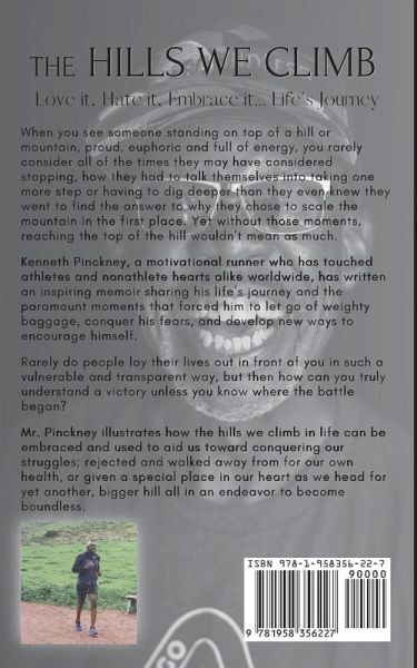 When you see someone standing on top of a hill or mountain, proud, euphoric and full of energy, you rarely consider all of the times they may have considered stopping, how they had to talk themselves into taking one more step or having to dig deeper than they even knew they went to find the answer to why they chose to scale the mountain in the first place. Yet without those moments, reaching the top of the hill wouldn't mean as much. Kenneth Pinckney, a motivational runner who has touched athletes and nonathlete hearts alike worldwide, has written an inspiring memoir sharing his life's journey and the paramount moments that forced him to let go of weighty baggage, conquer his fears, and develop new ways to encourage himself. Rarely do people lay their lives out in front of you in such a vulnerable and transparent way, but then how can you truly understand a victory unless you know where the battle began? Mr. Pinckney illustrates how the hills we climb in life can be embraced and used to aid us toward conquering our struggles; rejected and walked away from for our own health, or given a special place in our heart as we head for yet another, bigger hill all in an endeavor to become boundless.
