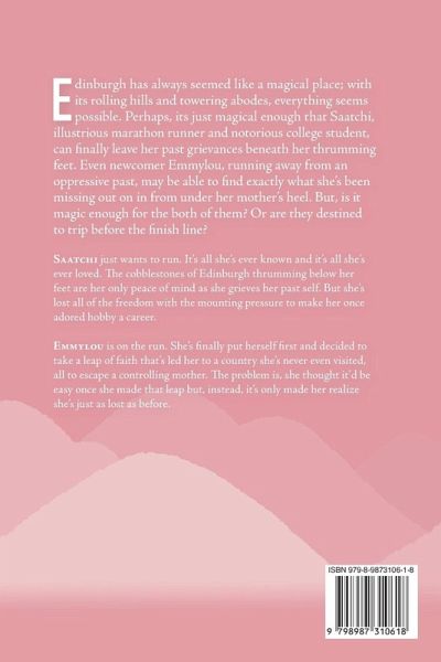 Emmylou has just started at University of Edinburgh where she meets a radge bunch of Scots who take her on new adventures. That's good news for Emmylou who is running from a past she doesn't fully understand. In an effort to find herself and become a stronger person, Emmylou befriends the elusive athlete of the group, Saatchi. Saatchi has always been told she's destined for greatness as a professional runner. She's a record holder, a champion, and perhaps a future Olympian. The only problem? She doesn't want to run for competition. Somewhere in Saatchi's career, she lost the joy of running. Maybe Emmylou can help her find it again. Join both Emmylou and Saatchi on their trail through bad parents, even worse men, and self-destruction. Will everyone make it through alright? Only one way to find out.