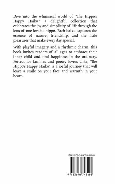 Dive into the whimsical world of "The Hippo's Happy Haiku," a delightful collection that celebrates the joy and simplicity of life through the lens of one lovable hippo. Each haiku captures the essence of nature, friendship, and the little pleasures that make every day special. With playful imagery and a rhythmic charm, this book invites readers of all ages to embrace their inner child and find happiness in the ordinary. Perfect for families and poetry lovers alike, "The Hippo's Happy Haiku" is a joyful journey that will leave a smile on your face and warmth in your heart.