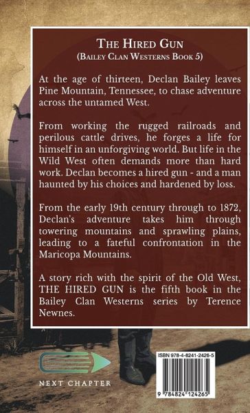 At the age of thirteen, Declan Bailey leaves Pine Mountain, Tennessee, to chase adventure across the untamed West. From working the rugged railroads and perilous cattle drives, he forges a life for himself in an unforgiving world. But life in the Wild West often demands more than hard work. Declan becomes a hired gun - and a man haunted by his choices and hardened by loss. From the early 19th century through to 1872, Declan's adventure takes him through towering mountains and sprawling plains, leading to a fateful confrontation in the Maricopa Mountains. A story rich with the spirit of the Old West, THE HIRED GUN is the fifth book in the Bailey Clan Westerns series by Terence Newnes.