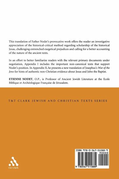 A very active member of the École Biblique et Archéologique Française de Jérusalem that has done so much to introduce historical criticism into the believer's reading of the Scriptures, Étienne Nodet proposes here a beautiful history book. Certainly, in putting forward to the general public an accessible synthesis of scholarly and dense works carried out successfully in these recent years, he spares the reader the ponderousness of a critical apparatus and consigns to Appendix I the citation of his principal ancient sources. He invites the reader to a fascinating effort of the intelligence and of the heart that constitutes the profession of a historian: documentation, appraisal of documents, examining witnesses, comparisons, inductions and deductions; even textual criticism is sometimes called upon: for example, he is one of those who postulates the existence of a Western Text of the New Testament, and draws interesting hypotheses from its comparison with the standard text of the critical editions. In a second appendix, not found in the original French work, he presents a new translation of Josephus' War of the Jews for hints of authentic non-Christian evidence about Jesus and John the Baptist. Beginning with the Gospel accounts of the infancy of Jesus, the author opens up for us the main features of the life of Jesus in a reading that oscillates between the questioning of the historical reference and the penetrating understanding of their verbal expression. Finally, there is the very suggestive sketch of the figure of James, the brother of the Lord and the head of the early Jerusalem church.