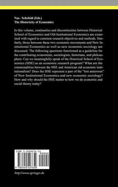 "At the heart of the book is ... German Historical School of Economics (GHSE) whose epistemology is discussed along with its role in contemporary economic debate. ... the book highlights the fact that during the last fifty years the economic debate has freed the GHSE from the view that considered it a conscious support for a conservative, authoritarian state ... . This is an interesting and stimulating book." (Frank C. Dwight, The Journal of European Economic History, Vol. 31 (2), 2002)