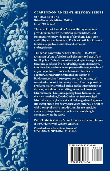 Sallust (86-35 BC) was a historian of major importance, writing at the time of the late Roman Republic. This is the first ever full-length commentary and English translation of one of his major works, the Histories, covering the years 78-67 BC, one of the least well-documented periods of the era. The translation is based on a text freshly examined for the first time since the original edition of 1891-3, and also includes newly discovered material.