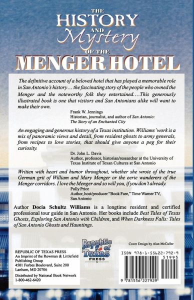Founded in 1859, the Menger Hotel is renowned for colorful, fascinating, and intriguing events that have made it a landmark hotel in San Antonio. Replete with photographs and anecdotes, the book will also keep readers on the edge of their seats with its tales of ghostly sightings. Personal sketches of famous guests, chilling ghost stories, and some of the hotel's most famous recipes - what more could you ask for!