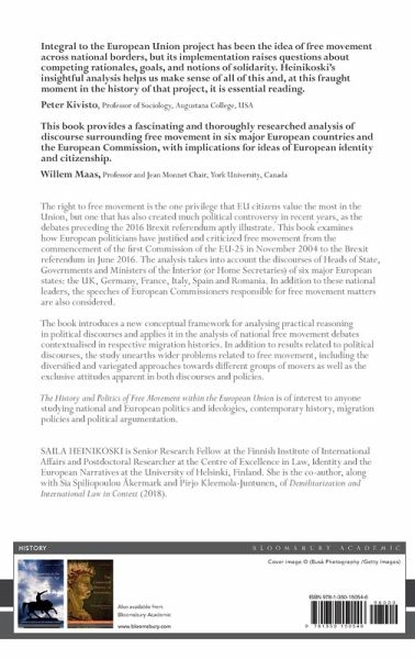 The right to free movement is the one privilege that EU citizens value the most in the Union, but one that has also created much political controversy in recent years, as the debates preceding the 2016 Brexit referendum aptly illustrate. This book examines how European politicians have justified and criticized free movement from the commencement of the first Commission of the EU-25 in November 2004 to the Brexit referendum in June 2016. The analysis takes into account the discourses of Heads of State, Governments and Ministers of the Interior (or Home Secretaries) of six major European states: the UK, Germany, France, Italy, Spain and Romania. In addition to these national leaders, the speeches of European Commissioners responsible for free movement matters are also considered. The book introduces a new conceptual framework for analysing practical reasoning in political discourses and applies it in the analysis of national free movement debates contextualised in respective migration histories. In addition to results related to political discourses, the study unearths wider problems related to free movement, including the diversified and variegated approaches towards different groups of movers as well as the exclusive attitudes apparent in both discourses and policies. The History and Politics of Free Movement within the European Union is of interest to anyone studying national and European politics and ideologies, contemporary history, migration policies and political argumentation.