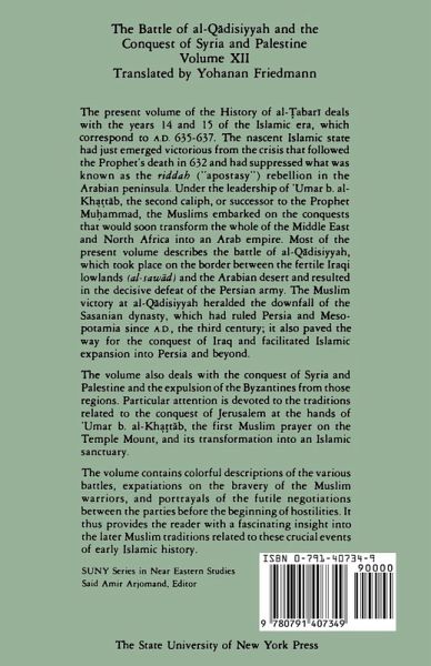 The present volume of the History of al-¿abar¿ deals with the years 14 and 15 of the Islamic era, which correspond to A.D. 635-637. The nascent Islamic state had just emerged victorious from the crisis that followed the Prophet's death in 632 and had suppressed what was known as the riddah ("apostasy") rebellion in the Arabian peninsula. Under the leadership of ¿Umar ibn al-Khä¿¿b, the second caliph, or successor to the Prophet Muhammad, the Muslims embarked on the conquests that would soon transform the whole of the Middle East and North Africa into an Arab empire. Most of the present volume describes the battle of al-Q¿disiyyah, which took place on the border between the fertile Iraqi lowlands (al-sawad) and the Arabian desert and resulted in the decisive defeat of the Persian army. The Muslim victory at al-Q¿disiyyah heralded the downfall of the Sasanian dynasty, which had ruled Persia and Mesopotamia since A.D., the third century; it also paved the way for the conquest of Iraq and facilitated Islamic expansion in Persia and beyond. The volume also deals with the conquest of Syria and Palestine and the Expulsion of the Byzantines from those regions. Particular attention is devoted to the traditions related to the conquest of Jerusalem at the hands of ¿Umar ibn al-Khä¿¿b, the first Muslim prayer on the Temple Mount, and its transformation into an Islamic sanctuary. The volume contains colorful descriptions of the various battles, expatiations on the bravery of the Muslim warriors, and portrayals of the futile negotiations between the parties before the beginning of hostilities. It thus provides the reader with a fascinating insight into the later Muslim traditions related to those crucial events of early Islamic history.
