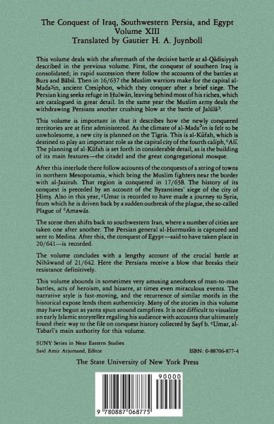 This volume deals with the aftermath of the decisive battle at al-Q¿disiyyah described in the previous volume. First, the conquest of southern Iraq is consolidated; in rapid succession there follow the accounts of the battles at Burs and B¿bil. Then in 16/637 the Muslim warriors make for the capital al-Mada'in, ancient Ctesiphon, which they conquer after a brief siege. The Persian king seeks refuge in ¿ulw¿n, leaving behind most of his riches, which are catalogued in great detail. In the same year the Muslim army deals the withdrawing Persians another crushing blow at the battle of Jal¿l¿'. This volume is important in that it describes how the newly conquered territories are at first administered. As the climate of al-Mada'in is felt to be unwholesome, a new city is planned on the Tigris. This is al-K¿fah, which is destined to play an important role as the capital city of the fourth caliph, 'Al¿. The planning of al-K¿fah is set forth in considerable detail, as is the building of its main features--the citadel and the great congregational mosque. After this interlude there follow accounts of the conquests of a string of towns in northern Mesopotamia, which bring the Muslim fighters near the border with al-Jazirah. That region is conquered in 17/638. The history of its conquest is preceded by an account of the Byzantines' siege of the city of ¿im¿. Also in this year, 'Umar is recorded to have made a journey to Syria, from which he is driven back by a sudden outbreak of the plague, the so-called Plague of 'Amaw¿s. The scene then shifts back to southwestern Iran, where a number of cities are taken one after another. The Persian general al-Hurmuz¿n is captured and sent to Medina. After this, the conquest of Egypt--said to have taken place in 20/641--is recorded. The volume concludes with a lengthy account of the crucial battle at Nihawand of 21/642. Here the Persians receive a blow that breaks their resistance definitively. This volume abounds in sometimes very amusing anecdotes of man-to-man battles, acts of heroism, and bizarre, at times even miraculous events. The narrative style is fast-moving, and the recurrence of similar motifs in the historical expose lends them authenticity. Many of the stories in this volume may have begun as yarns spun around campfires. It is not difficult to visualize an early Islamic storyteller regaling his audience with accounts that ultimately found their way to the file on conquest history collected by Sayf ibn 'Umar, al-¿abar¿'s main authority for this volume. A discounted price is available when purchasing the entire 39-volume History of al-¿abar¿ set. Contact SUNY Press for more information.