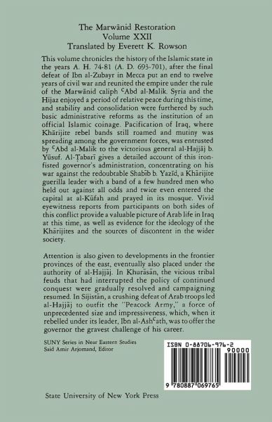 This volume chronicles the history of the Islamic state in the years A. H. 74-81 (A. D. 693-701), after the final defeat of Ibn al-Zubayr in Mecca put an end to twelve years of civil war and reunited the empire under the rule of the Marw¿nid caliph 'Abd al-Malik. Syria and the Hijaz enjoyed a period of relative peace during this time, and stability and consolidation were furthered by such basic administrative reforms as the institution of an official Islamic coinage. Pacification of Iraq, where Kh¿rijite rebel bands still roamed and mutiny was spreading among the government forces, was entrusted by 'Abd al-Malik to the victorious general al-¿ajj¿j ibn Y¿suf. Al-¿abar¿ i gives a detailed account of this iron-fisted governor's administration, concentrating on his war against the redoubtable Shabib b. Yazid, a Kh¿rijite guerilla leader with a band of a few hundred men who held out against all odds and twice even entered the capital at al-Kufah and prayed in its mosque. Vivid eyewitness reports from participants on both sides of this conflict provide a valuable picture of Arab life in Iraq at this time, as well as evidence for the ideology of the Kharijites and the sources of discontent in the wider society. Attention is also given to developments in the frontier provinces of the east, eventually also placed under the authority of al-¿ajj¿j. In Khurasan, the vicious tribal feuds that had interrupted the policy of continued conquest were gradually resolved and campaigning resumed. In Sijistan, a crushing defeat of Arab troops led al-¿ajj¿j to outfit the "Peacock Army," a force of unprecedented size and impressiveness, which, when it rebelled under its leader, Ibn al-Ash'ath, was to offer the governor the gravest challenge of his career.