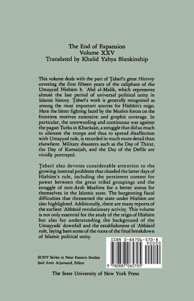 This volume deals with the part of ¿abar¿'s great History covering the first fifteen years of the caliphate of the Umayyad Hish¿m ibn 'Abd al-Malik, which represents almost the last period of universal political unity in Islamic history. Tabari's work is generally recognized as among the most important sources for Hish¿m's reign. Here the bitter fighting faced by the Muslim forces on the frontiers receives extensive and graphic coverage. In particular, the unrewarding and continous war against the pagan Turks in Khurasan, a struggle that did so much to alienate the troops and thus to spread disaffection with Umayyad rule, is recorded in much more detail than elsewhere. Military disasters such as the Day of Thirst, the Day of Kamarjah, and the Day of the Defile are vividly portrayed. ¿abar¿ also devotes considerable attention to the growing internal problems that clouded the latter days of Hish¿m's rule, including the persistent contest for power between the great tribal groupings and the struggle of non-Arab Muslims for better status for themselves in the Islamic state. The burgeoning fiscal difficulties that threatened the state under Hish¿m are also highlighted. Additionally, there are many reports of the easliest 'Abb¿sid revolutionary activity. This volume is not only essential for the study of the reign of Hish¿m but also for understanding the background of the Umayyads' downfall and the establishment of 'Abb¿sid rule, laying bare some of the roots of the final breakdown of Islmaic political unity. A discounted price is available when purchasing the entire 39-volume History of al-¿abar¿ set. Contact SUNY Press for more information.