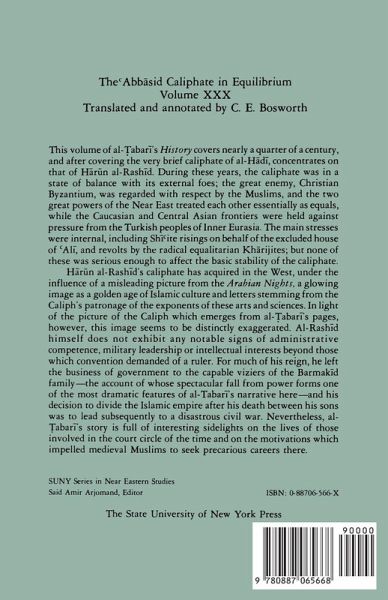 This volume of al-¿abar¿'s History covers nearly a quarter of a century, and after covering the very brief caliphate of al-H¿d¿, concentrates on that of H¿r¿n al-Rash¿d. During these years, the caliphate was in a state of balance with its external foes; the great enemy, Christian Byzantium, was regarded with respect by the Muslims, and the two great powers of the Near East treated each other essentially as equals, while the Caucasian and Central Asian frontiers were held against pressure from the Turkish peoples of Inner Eurasia. The main stresses were internal, including Sh¿'ite risings on behalf of the excluded house of 'Al¿, and revolts by the radical equalitarian Kh¿rijites; but none of these was serious enough to affect the basic stability of the caliphate. H¿r¿n ar-Rash¿d's caliphate has acquired in the West, under the influence of a misleading picture from the Arabian Nights, a glowing image as a golden age of Islamic culture and letters stemming from the Caliph's patronage of the exponents of these arts and sciences. In light of the picture of the Caliph which emerges from al-¿abar¿'s pages, however, this image seems to be distinctly exaggerated. Al-Rash¿d himself does not exhibit any notable signs of administrative competence, military leadership or intellectual interests beyond those which convention demanded of a ruler. For much of his reign, he left the business of government to the capable viziers of the Barmak¿d family--the account of whose spectacular fall from power forms one of the most dramatic features of al-¿abar¿'s narratives here--and his decision to divide the Islamic empire after his death between his sons was to lead subsequently to a disastrous civil war. Nevertheless, al-¿abar¿'s story is full of interesting sidelights on the lives of those involved in the court circle of the time and on the motivations which impelled medieval Muslims to seek precarious careers there. A discounted price is available when purchasing the entire 39-volume History of al-¿abar¿ set. Contact SUNY Press for more information.