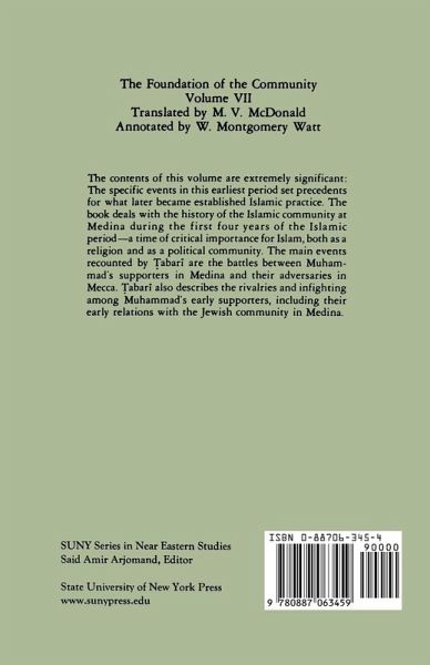 The contents of this volume are extremely significant: The specific events in this earliest period set precedents for what later became established Islamic practice. The book deals with the history of the Islamic community at Medina during the first four years of the Islamic period--a time of critical importance for Islam, both as a religion and as a political community. The main events recounted by ¿abar¿ are the battles between Müammad's supporters in Medina and their adversaries in Mecca. ¿abar¿ also describes the rivalries and infighting among Müammad's early supporters, including their early relations with the Jewish community in Medina.