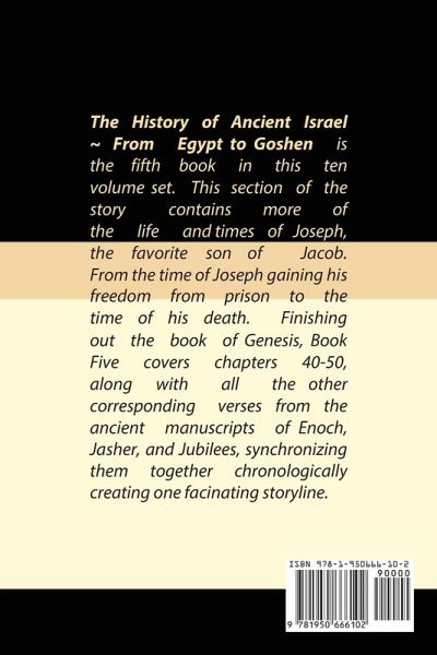 The History of Ancient Israel series was compiled by Ahava Lilburn and produced by Minister 2 Others. This ten-volume set synchronizes the entire manuscripts of Enoch, Jasher, and Jubilees into the Bible, making one complete story-line. The books are interwoven using the first six books of the Bible as the backbone, and the extra-biblical texts as the fleshing out of that backbone. Though the language in the writings has been updated, replacing words like "thou" and "thine" with words like "you" and "your", the integrity of the verses remains intact. The History of Ancient Israel series includes the following books: Book 1: In The Beginning... From Adam to Noah Book 2: In The Beginning... From Noah to Abraham Book 3: In The Beginning... From Abraham to Israel Book 4: In The Beginning... From Israel to Egypt Book 5: In The Beginning... From Egypt to Goshen Book 6: Israel... From Goshen to Sinai Book 7: Israel... From Sinai to the Tabernacle Book 8: Israel... Through the Book of Leviticus Book 9: Israel... Through the Book of Numbers Book 10: Israel... Through the Book of Joshua