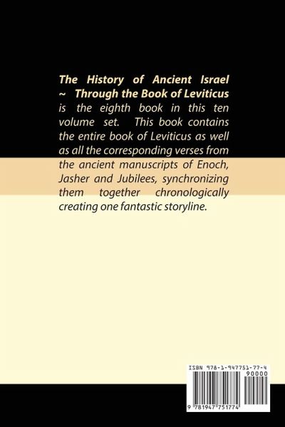 The History of Ancient Israel series was compiled by Ahava Lilburn and produced by Minister 2 Others. This ten-volume set synchronizes the entire manuscripts of Enoch, Jasher, and Jubilees into the Bible, making one complete story-line. The books are interwoven using the first six books of the Bible as the backbone, and the extra-biblical texts as the fleshing out of that backbone. Though the language in the writings has been updated, replacing words like "thou" and "thine" with words like "you" and "your", the integrity of the verses remains intact. The History of Ancient Israel series includes the following books: Book 1: In The Beginning... From Adam to Noah Book 2: In The Beginning... From Noah to Abraham Book 3: In The Beginning... From Abraham to Israel Book 4: In The Beginning... From Israel to Egypt Book 5: In The Beginning... From Egypt to Goshen Book 6: Israel... From Goshen to Sinai Book 7: Israel... From Sinai to the Tabernacle Book 8: Israel... Through the Book of Leviticus Book 9: Israel... Through the Book of Numbers Book 10: Israel... Through the Book of Joshua