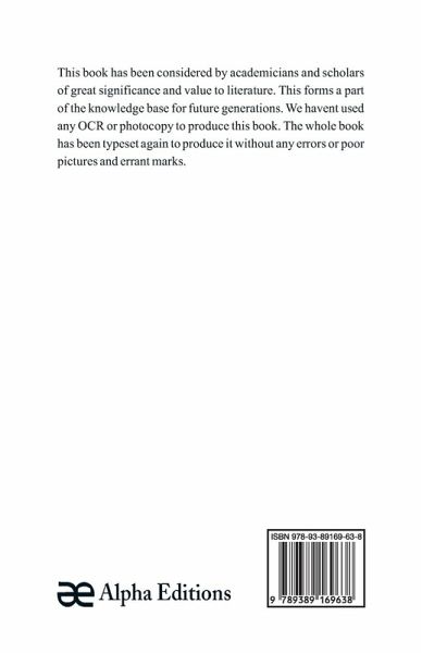 This book has been considered by academicians and scholars of great significance and value to literature. This forms a part of the knowledge base for future generations. We have represented this book in the same form as it was first published. Hence any marks seen are left intentionally to preserve its true nature.