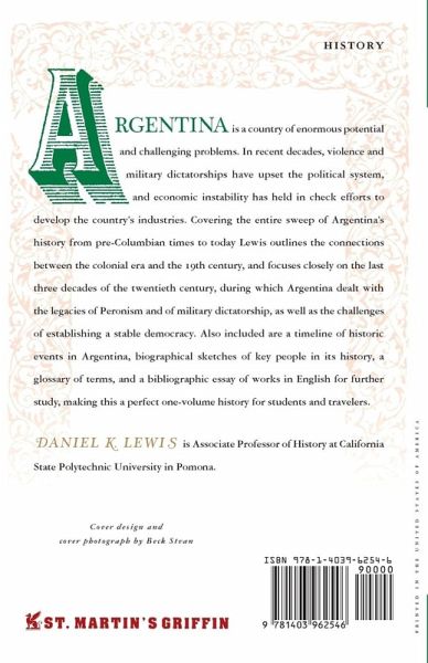 Argentina is a country of enormous potential and challenging problems. In recent decades, violence and military dictatorships have upset the political system, and economic instability has held in check efforts to develop the country's industries. Covering the entire sweep of Argentina's history from pre-Columbian times to 2001, the narrative outlines the connections between the colonial era and the 19th century and focuses closely on the last three decades of the twentieth century, during which Argentina dealt with the legacies of Peronism and of military dictatorship, as well as the challenges of establishing a stable democracy. Also included are a timeline of historic events in Argentina, biographical sketches of key people in its history, a glossary of terms, and a bibliographic essay of works in English for further study. All libraries should update their collection of Latin American histories with this work, which is ideal for students and travelers.