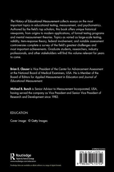 Part I Testing Movements 1. Early Efforts 2. Development and Evolution of the SAT and ACT 3. The History of Norm- and Criterion-Referenced Testing 4. The Role of the Federal Government in Shaping Educational Testing Policy and Practice 5. Historical Milestones in the Assessment of English Learners 6. Evolving Notions of Fairness in Testing in the United States 7. A Century of Testing Controversies Part II Measurement Theory and Practice 8. A History of Classical Test Theory 9. The Evolution of the Concept of Validity 10. Generalizability Theory 11. A History of Scaling and its Relationship to Measurement 12. A History of Bayesian Inference in Educational Measurement 13. History of Test Equating Methods and Practices Through 1985 14. A History of Rasch Measurement Theory