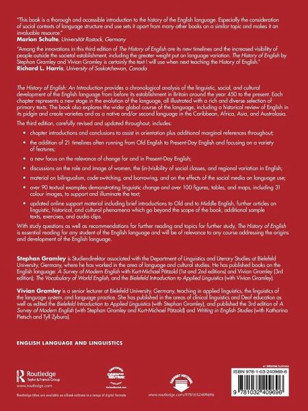 The History of English provides a chronological analysis of the linguistic, social, and cultural development of the English language from before its establishment in Britain around the year 450 to the present. Each chapter represents a new stage in the evolution of the language.