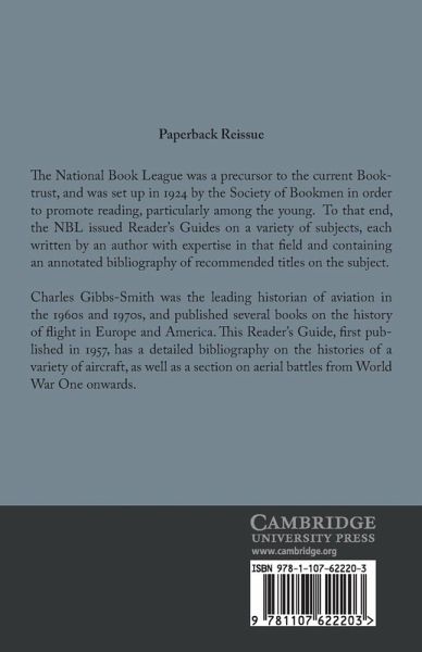 The National Book League was a precursor to the current Booktrust, and was set up in 1924 by the Society of Bookmen in order to promote reading, particularly among the young. To that end, the NBL issued Reader's Guides on a variety of subjects, each written by an author with expertise in that field and containing an annotated bibliography of recommended titles on the subject. Charles Gibbs-Smith was the leading historian of aviation in the 1960s and 1970s, and published several books on the history of flight in Europe and America. This Reader's Guide, first published in 1957, has a detailed bibliography on the histories of a variety of aircraft, as well as a section on aerial battles from World War One onwards.