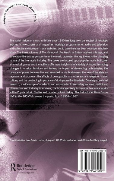 The social history of music in Britain since 1950 has long been the subject of nostalgic articles in newspapers and magazines, nostalgic programmes on radio and television and collective memories on music websites, but to date there has been no proper scholarly study. The three volumes of The History of Live Music in Britain address this gap, and do so from the unique perspective of the music promoter: the key theme is the changing nature of the live music industry. The books are focused upon popular music but cover all musical genres and the authors offer new insights into a variety of issues, including changes in musical fashions and tastes; the impact of developing technologies; the balance of power between live and recorded music businesses; the role of the state as regulator and promoter; the effects of demographic and other social changes on music culture; and the continuing importance of do-it-yourself enthusiasts. Drawing on archival research, a wide range of academic and non-academic secondary sources, participant observation and industry interviews, the books are likely to become landmark works within Popular Music Studies and broader cultural history.