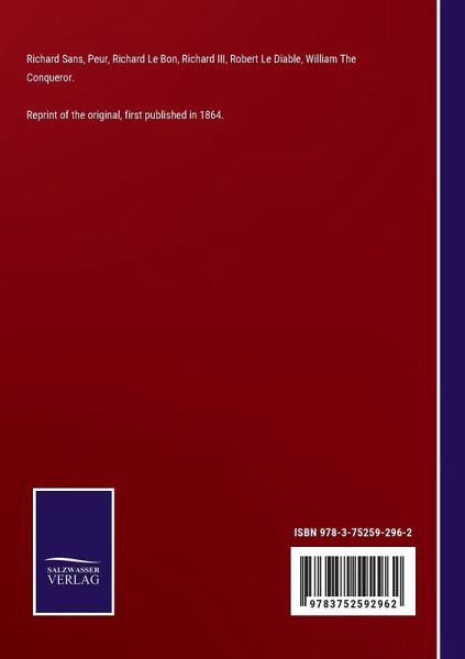 Reprint of the original, first published in 1864. Richard Sans, Peur, Richard Le Bon, Richard III, Robert Le Diable, William The Conqueror.