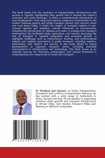The book delves into the evolution of transportation infrastructure and services in Uganda, highlighting their pivotal role in shaping the nation's economic and social landscape. It offers a comprehensive examination of road development, from early trails used by indigenous communities to the modern highway systems and public transport services that connect urban and rural areas today. It traces the origins of transport systems in pre-colonial Uganda and examines colonial influences on infrastructure, including the introduction of railways and roads. It analyses how transport development has facilitated trade, agriculture, and tourism discussing the role of transport in regional integration and economic growth. It highlights challenges such as maintenance, funding, and environmental impacts and explores innovations in public transport, including matatus, boda-bodas, and modern bus services. It also looks ahead to future developments in Uganda's transport sector, including potential improvements in infrastructure and technology. This book serves as an essential resource for historians, policymakers, and anyone interested in understanding the integral role of roads and transport.