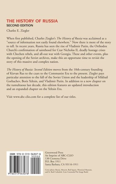 An updated edition of the acclaimed history of Russia, this new volume includes a wealth of material on events of the last decade. When first published, Charles Ziegler's The History of Russia was acclaimed as a source of information not easily found elsewhere, and as "clear, balanced, and insightful," by Rajan Menon of Lehigh University. Now Ziegler's remarkable volume returns, fully updated to be the work of choice for readers looking for an introduction to the history of the world's largest country. The History of Russia: Second Edition moves from the 10th-century founding of Kievan Rus to the czars to the Communist Era to the present, with particular emphasis on the fall of the Soviet Union and the leadership of Mikhail Gorbachev, Boris Yeltsin, and Vladimir Putin. In addition to a new chapter on the tumultuous last decade, this edition features an updated introduction and an expanded chapter on the Yeltsin Era.