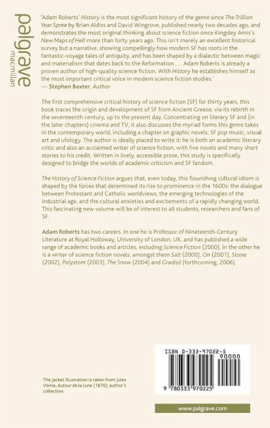 'Adam Roberts' 'History' is the most significant history of the genre since The Trillion Year Spree by Brian Aldiss and David Wingrove, published nearly two decades ago, and demonstrates the most original thinking about science fiction since Kingsley Amis's New Maps of Hell more than forty years ago. This isn't merely an excellent historical survey but a narrative, showing compellingly how modern science fiction has roots in the fantastic-voyage tales of antiquity, and has been shaped by a dialectic between magic and materialism that dates back to the Reformation...Adam Roberts is already a proven author of high-quality science fiction. With 'History' he establishes himself as the most important critical voice in modern science fiction studies.' - Stephen Baxter, Current Vice President, The British Science Fiction Association and Author of Timelike Infinity and Voyage
