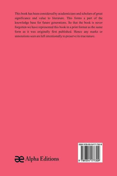This book has been considered by academicians and scholars of great significance and value to literature. This forms a part of the knowledge base for future generations. So that the book is never forgotten we have represented this book in a print format as the same form as it was originally first published. Hence any marks or annotations seen are left intentionally to preserve its true nature.