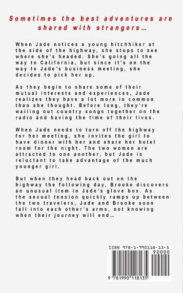 Sometimes the best adventures are shared with strangers... When Jade notices a young hitchhiker at the side of the highway, she stops to see where she's headed. She's going all the way to California, but since it's on the way to Jade's business meeting, she decides to pick her up. As they begin to share some of their mutual interests and experiences, Jade realizes they have a lot more in common than she thought. Before long, they're wailing out country songs together on the radio and having the time of their lives. When Jade needs to turn off the highway for her meeting, she invites the girl to have dinner with her and share her hotel room for the night. The two women are attracted to one another, but Jade is reluctant to take advantage of the much younger girl. But when they head back out on the highway the following day, Brooke discovers an unusual item in Jade's glove box. As the sexual tension quickly ramps up between the two travelers, Jade and Brooke soon fall into each other's arms, not knowing when their journey will end...