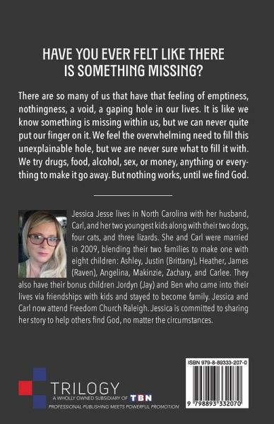 HAVE YOU EVER FELT LIKE THERE IS SOMETHING MISSING? There are so many of us that have that feeling of emptiness, nothingness, a void, a gaping hole in our lives. It is like we know something is missing within us, but we can never quite put our finger on it. We feel the overwhelming need to fill this unexplainable hole, but we are never sure what to fill it with. We try drugs, food, alcohol, sex, or money, anything or everything to make it go away. But nothing works, until we find God.