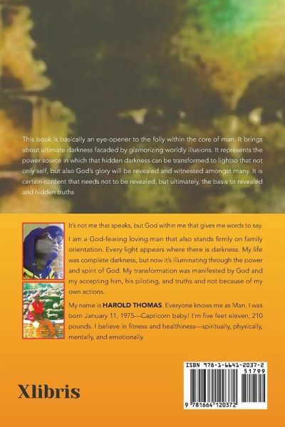 This book is basically an eye-opener to the folly within the core of man. It brings about ultimate darkness facaded by glamorizing worldly illusions. It represents the power source in which that hidden darkness can be transformed to lightso that not only self, but also God's glory will be revealed and witnessed amongst many. It is certain content that needs not to be revealed, but ultimately, the basis to revealed and hidden truths