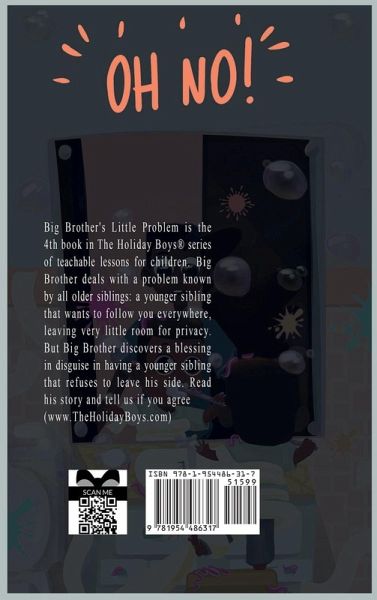 Big Brother's Little Problem is the 4th book in The Holiday Boys® series of teachable lessons for children. Big Brother deals with a problem known by all older siblings: a younger sibling that wants to follow you everywhere, leaving very little room for privacy. ¿But Big Brother discovers a blessing in disguise in having a younger sibling that refuses to leave his side. Read his story and tell us if you agree (www.TheHolidayBoys.com).