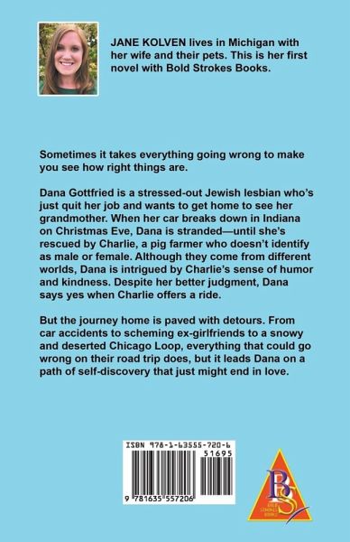 Sometimes it takes everything going wrong to make you see how right things are. Dana Gottfried is a stressed-out Jewish lesbian who's just quit her job and wants to get home to see her grandmother. When her car breaks down in Indiana on Christmas Eve, Dana is stranded--until she's rescued by Charlie, a pig farmer who doesn't identify as male or female. Although they come from different worlds, Dana is intrigued by Charlie's sense of humor and kindness. Despite her better judgment, Dana says yes when Charlie offers a ride. But the journey home is paved with detours. From car accidents to scheming exgirlfriends to a snowy and deserted Chicago Loop, everything that could go wrong on their road trip does, but it leads Dana on a path of self-discovery that just might end in love.