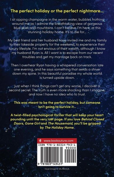 The perfect holiday or the perfect nightmare... I sit sipping champagne in the warm water, bubbles frothing around me as I admire the breath-taking view of gorgeous blue skies and mountains. I can't believe I'm here, at this stunning holiday home. It's to die for... My best friend and her husband have invited me and my family to their lakeside property for the weekend, to experience their luxury lifestyle. I'm not envious of their wealth, although I know my husband Ryan is. All I want is to escape from our recent troubles and get my marriage back on track. Then I overhear Ryan having a whispered conversation late one evening, and he says something that sends a shiver down my spine. In this beautiful paradise my whole world is turned upside down. Just when I think things can't get any worse, I discover a second secret. The truth is even more shocking than I imagine, and now I have no idea who to trust. This was meant to be the perfect holiday, but someone isn't going to survive it... A twist-filled psychological thriller that will keep your heart pounding until the very last page. If you love Behind Closed Doors, Gone Girl and The Housemaid, you'll be gripped by The Holiday Home. What readers are saying about Daniel Hurst: 'GREAT BOOK!!!... Truly amazing... I could not stop reading it and absolutely loved it!' Goodreads reviewer, ¿¿¿¿¿ 'Amazing... unexpected twists and turns... gripping from the beginning... Keep the lights burning, you will be up late to finish this one!' Goodreads reviewer, ¿¿¿¿¿