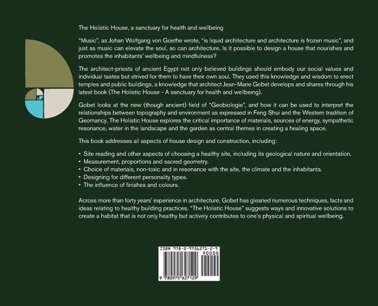 After completing a 4-year architectural drafting apprenticeship at his uncle's architect's practice Swiss born Jean-Marie Gobet travelled around the world for 6 years during which time he worked for architects in Tahiti (French Polynesia) and Melaka (Malaysia). Jean-Marie then completed his architectural studies (B. Arch.) at the University of Western Australia in 1983.In the mid-eighties he returned to work in Switzerland and studied the effects of sick building syndrome due to toxic materials and electromagnetic pollution, he then obtained a Diploma in Geobiology in France. In the early nineties Jean-Marie lived in a community, in Northern Italy and then France where he participated in the design and construction of an eco-village in the Limoges region, in France.Jean-Marie Gobet has more than forty years of experience in architecture, designing commercial, educational, medical, and residential buildings and is still practicing architecture in Fremantle WA."The Holistic House" is a summation of his experience offering solutions for a habitat that is not only healthy but an active contribution to one's physical and spiritual wellbeing.
