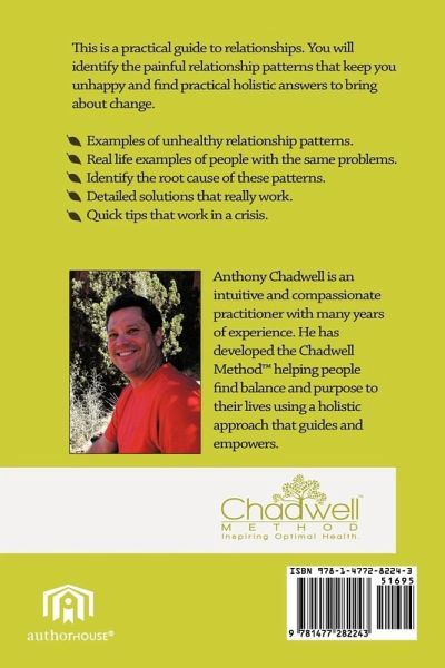In this era of our modern human culture, it is too easy for our lives to spin out of control. How we respond and react to everyday pressures cannot help but impact the most important aspect of our lives: RELATIONSHIPS. The Chadwell Method¿ brings practical and concise solutions to the reader for a higher consciousness approach to all types of relationships. You will learn quickly about how drama-loops¿ and traumatic emotional overlays¿ may be operating in your life and may lead to dysfunction. It is possible to get over past hurts and dysfunctional patterns. By applying Chadwell's new concepts, it is not as difficult as you may believe. The simple suggestions given in this book provide tangible help to clarify what change is needed, the results you can expect by doing this work, and assurance that you will handle relationship situations in healthier ways, feeling better about yourself in the process. You will attract people into your life with the same higher level of consciousness you are creating for yourself. Once you experience the sweetness this change brings, you will want more and more of it. When you make conscious improvement in even one area, it will favorably impact all of your relationships. This process is a fascinating evolution, one you will not want to miss. Use this book as a great place to start gaining more clarity about relationships. Then, by example, share that clarity and the fresh hope it brings with those you come in contact with throughout your life. This is one of the greatest rewards of conscious living. The key is in your hand. Start today!