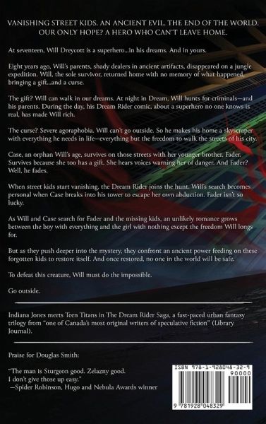WINNER OF THE 2023 AURORA AWARD FOR BEST YA NOVELWINNER OF THE JURIED IAP AWARD FOR BEST YA NOVEL Vanishing street kids. An ancient evil. The end of the world. Our only hope? A hero who can't leave home. At seventeen, Will Dreycott is a superhero...in his dreams. And in yours. Eight years ago, Will's parents, shady dealers in ancient artifacts, disappeared on a jungle expedition. Will, the sole survivor, returned home with no memory of what happened, bringing a gift...and a curse. The gift? Will can walk in our dreams. At night in Dream, Will hunts for criminals-and his parents. During the day, his Dream Rider comic, about a superhero no one knows is real, has made Will rich. The curse? Severe agoraphobia. Will can't go outside. So he makes his home a skyscraper with everything he needs in life-everything but the freedom to walk the streets of his city. Case, an orphan Will's age, survives on those streets with her younger brother, Fader. Survives because she too has a gift. She hears voices warning her of danger. And Fader? Well, he fades. When street kids start vanishing, the Dream Rider joins the hunt. Will's search becomes personal when Case breaks into his tower to escape her own abduction. Fader isn't so lucky. As Will and Case search for Fader and the missing kids, an unlikely romance grows between the boy with everything and the girl with nothing except the freedom Will longs for. But as they push deeper into the mystery, they confront an ancient power feeding on these forgotten kids to restore itself. And once restored, no one in the world will be safe. To defeat this creature, Will must do the impossible. Go outside.~~~ Indiana Jones meets Teen Titans in The Dream Rider Saga, a fast-paced urban fantasy trilogy from "one of Canada's most original writers of speculative fiction" (Library Journal).~~~ Praise for The Hollow Boys "An assured, confident novel... A must-read story for YA fantasy fans." -Blueink Review (¿ Starred review) "Inventive, engaging, and boundless fun." -The Ottawa Review of Books "Fast-paced and entertaining... I enjoyed The Hollow Boys immensely" -SF Crowsnest "A fun supernatural tale with well-developed characters and a touch of romance." -Kirkus Reviews Praise for Douglas Smith "The man is Sturgeon good. Zelazny good. I don't give those up easy." -Spider Robinson, Hugo and Nebula Awards winner "A great storyteller with a gifted and individual voice." -Charles de Lint, World Fantasy Award winner "His stories are a treasure trove of riches that will touch your heart while making you think." -Robert J. Sawyer, Hugo and Nebula Awards winner "Stories you can't forget, even years later." -Julie Czerneda, multi-award-winning author and editor