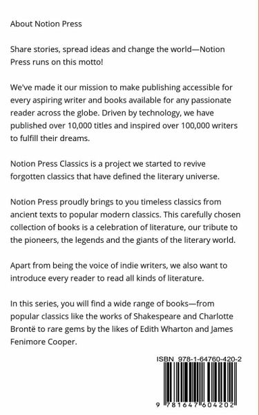 Notion Press proudly brings to you timeless classics from ancient texts to popular modern classics. This carefully chosen collection of books is a celebration of literature, our tribute to the pioneers, the legends and the giants of the literary world. Apart from being the voice of indie writers, we also want to introduce every reader to read all kinds of literature. In this series, you will find a wide range of books-from popular classics like the works of Shakespeare and Charlotte Brontë to rare gems by the likes of Edith Wharton and James Fenimore Cooper.