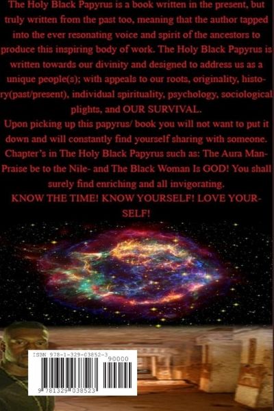A book about the resurrection of THE BLACK MAN AND THE BLACK WOMAN.We are in a period of history where it seems to be repeating it self and this has provoked many fears and questions for some. The Holy Black Papyrus addresses these concerns and questions, if you are looking for answers, insight, knowledge of self, or just a great read, then this book is for you! Great for the layman and scholar.