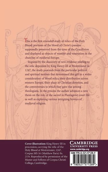 The first extended study of relics of the Holy Blood: portions of the blood of Christ's passion preserved supposedly from the time of the Crucifixion and displayed as objects of wonder and veneration in the churches of medieval Europe. Inspired by the discovery of new evidence relating to the relic deposited by King Henry III at Westminster in 1247, the study proceeds from the particular political and spiritual motives that inspired this gift to a wider consideration of blood relics, their distribution across western Europe, their place in Christian devotion, and the controversies to which they gave rise among theologians. In the process the author advances a new thesis on the role of the sacred in Plantagenet court life as well as exploring various intriguing byways of medieval religion.