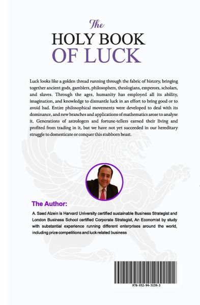 Have you ever wondered about luck? What is luck? Is it blind force that hits randomly and changes people's lives for the better or worse? Is it rational energy with conscious purpose? The Holy Book of Luck is ''fascinating'' the first of its kind book challenging the outdated notion that hard work is the only way to success, It is not. Luck plays a major role in your success, and you can't do anything about it The Holy Book of Luck is the book which takes you on a pleasant journey to really change your perspective forever about luck and hard work.
