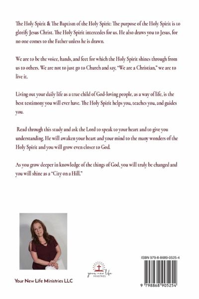 The Holy Spirit & The Baptism of the Holy Spirit: The purpose of the Holy Spirit is to glorify Jesus Christ. The Holy Spirit intercedes for us. He also draws you to Jesus, for no one comes to the Father unless he is drawn. We are to be the voice, hands, and feet for which the Holy Spirit shines through from us to others. We are not to just go to Church and say, "We are a Christian," we are to live it. Living out your daily life as a true child of God-loving people, as a way of life, is the best testimony you will ever have. The Holy Spirit helps you, teaches you, and guides you. Read through this study and ask the Lord to speak to your heart and to give you understanding. He will awaken your heart and your mind to the many wonders of the Holy Spirit and you will grow even closer to God. As you grow deeper in knowledge of the things of God you will truly be changed and you will shine as a "City on a Hill".