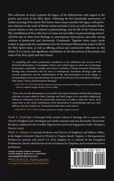 This collection of essays explores the legacy of the Reformation with regard to the person and work of the Holy Spirit. Following the five-hundredth anniversary of Luther's posting of his ninety-five theses, these essays consider this legacy with particular reference to the work of Martin Luther and John Calvin, as well as broader Reformation themes as they are related to pneumatology and the life of the church today. The contribution of this collection is to tease out and reflect on pneumatology historically but also to relate these findings to contemporary discussions, especially among scholars of pentecostal and charismatic Christianity. Together these essays invite readers to appreciate the contribution that the Protestant Reformation makes to life in the Holy Spirit today, as well as offering critical and constructive reflection on this theme. It is a timely and significant contribution to the discussions of the person and work of the Holy Spirit and the church.