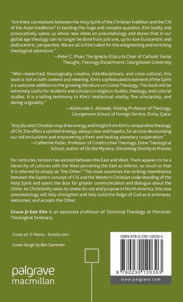 "I highly recommend Kim's work as a fine piece of the kind of contextual theology we very much need today in the area of the Holy Spirit and Chi, given the widespread awareness and culture of Chi in so many parts of the world, especially in East Asia. She should be complimented on a very promising pioneering work." - Anselm K. Min, Dean and John D. and Lilian Maguire Distinguished Professor of Religion, The School of Religion, Claremont Graduate University
