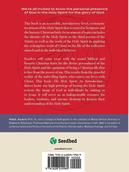The Holy Spirit: An Introduction is an accessible, introductory-level, systematic treatment of the Holy Spirit that is rooted in Scripture and the historic Christian faith. Its treatment of topics includes the identity of the Holy Spirit as the third person of the Trinity as well as the work of the Holy Spirit in applying the redemptive work of Christ in the life of the collective church and in the individual believer. Readers will come away with the sound biblical and historic Christian basis for the divine personhood of the Holy Spirit and the optimism of living a Christian life that is free from the power of sin. This results from the graceful reality of the indwelling Spirit, who unites our lives with Christ. This book-The Holy Spirit: An Introduction-drives home our high privilege of having the Holy Spirit restore the image of God in individuals by uniting us to Jesus. It will serve as an indispensable resource for leaders, students, and anyone desiring to deepen their understanding of the Holy Spirit.
