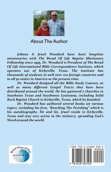 Johnny & Jewel Woodard have been longtime missionaries with The Bread Of Life Baptist Missionary Fellowship since 1995. Dr. Woodard is President of The Bread Of Life International Bible Correspondence Institute, which operates out of Kirbyville, Texas. The Institute has thousands of students in well over 100 foreign countries and in all 50 states in America at the present time. Dr. Woodard designed all the Bible Study Courses, as well as many different Gospel Tracts that have been distributed around the world. He has pastored 7 churches in Southeast Texas and Southwest Louisiana, including Solid Rock Baptist Church in Kirbyville, Texas, which he founded. Dr. Woodard has authored several books on various topics, including his first, "Reaching The Perishing" which is his autobiography. He and Sis. Jewel reside in Kirbyville, Texas and stay very active in the ministry, spreading God's Word around the world.